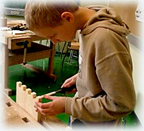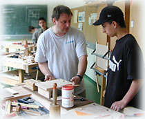 Die Schüler lernen grundlegende Holzbearbeitungsmethoden kennen.