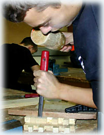 Weiter Vertiefung der Holzbearbeitungstechniken, Schlitz- und Zapfenverbindungen, eingestemmte Zapfen... , Dübelverbindungen, ... einfache Furnierarbeiten, Oberflächenbearbeitung (Grob-, Feinschliff, Lackieren, Ölen, Wachsen)